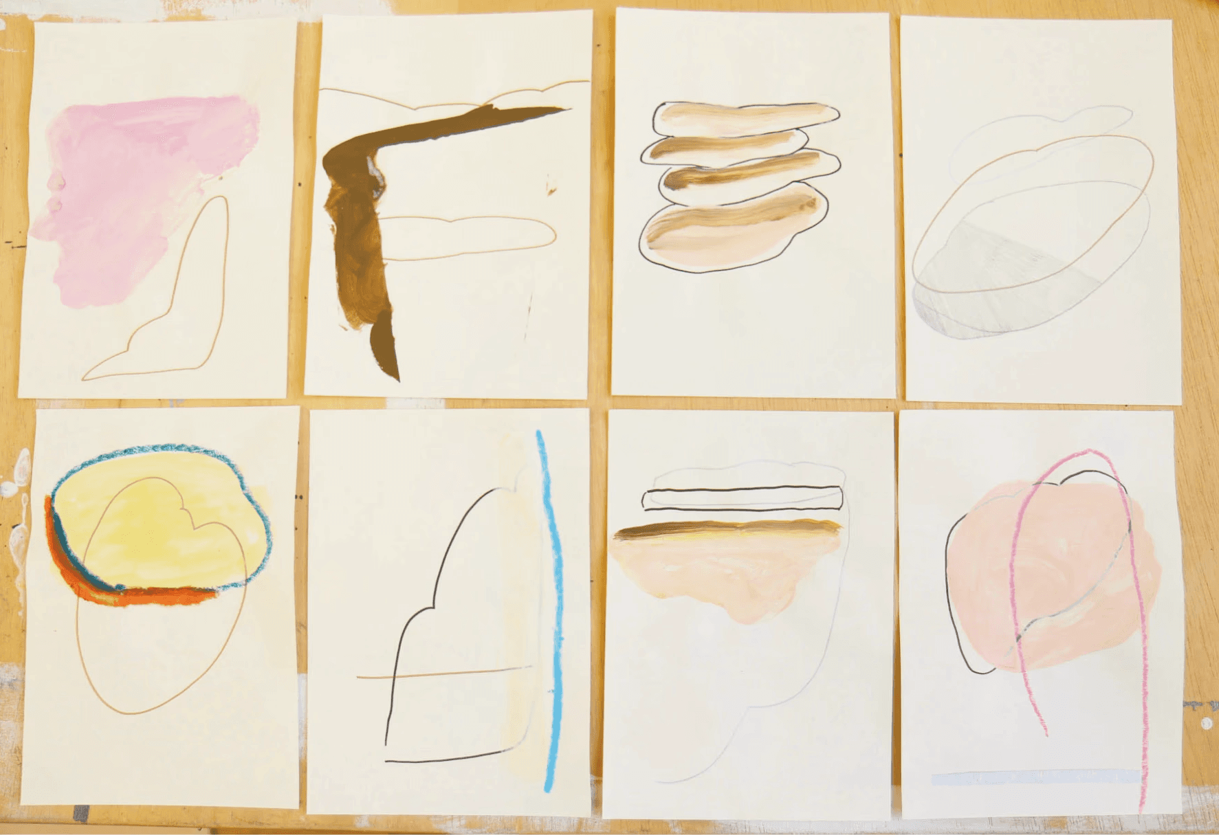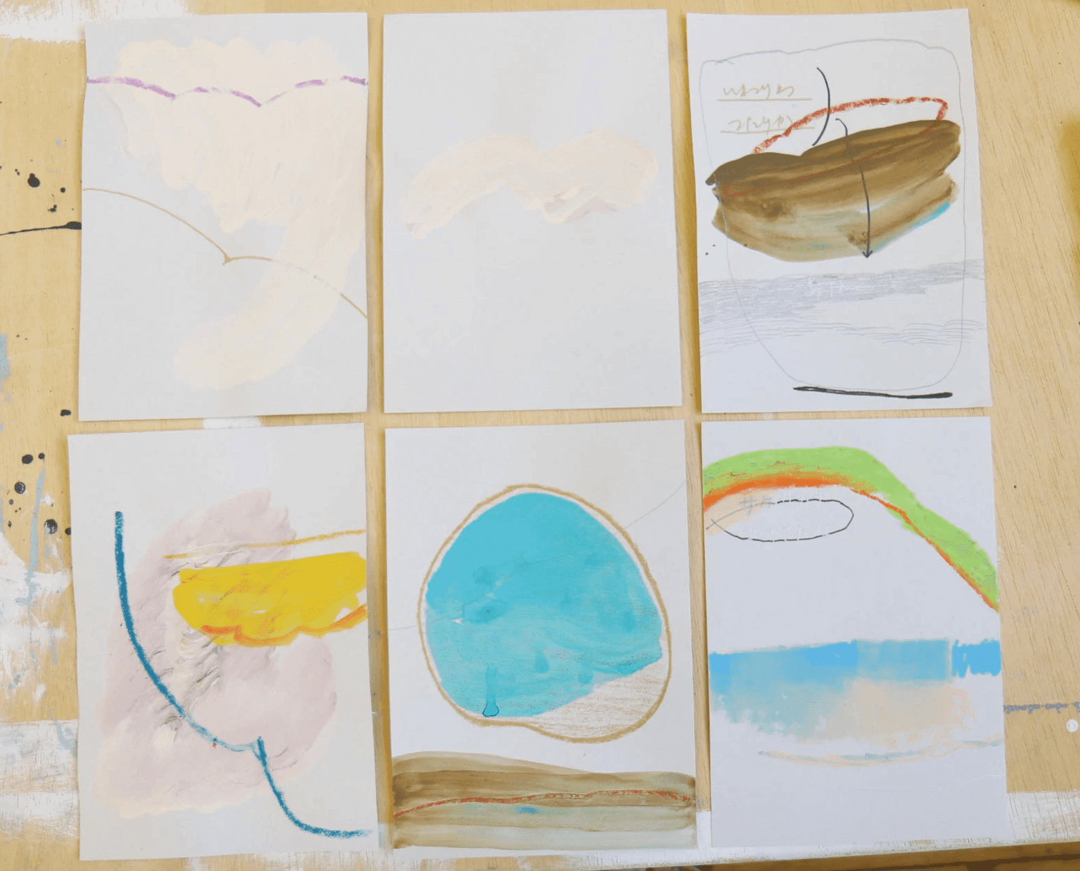 each 15x21cm / acrylic, oil pastel, and pencil on paper / 2019