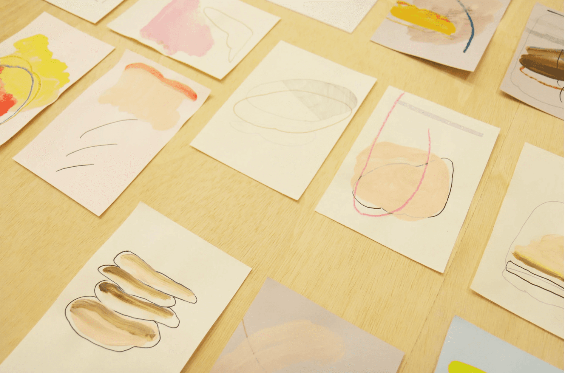 each 15 × 21 cm / acrylic, oil pastel, and pencil on paper — 2019